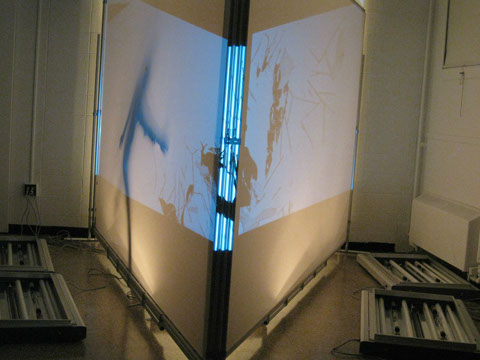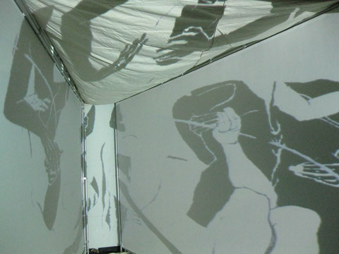 Ces expérimentations ont été menées dans le cadre d'un projet de doctorat, Ph.D. (2010) explorant les relations entre le corps et l'espace, et impliquant le corps, la toile et l’espace « in situ ».